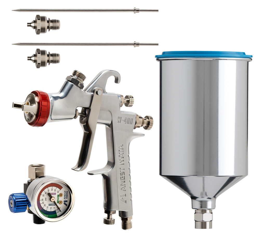 Home - Guns & Accessories - ANEST IWATA W-400-LV-WBX-KIT RED 1.3, 1.5,1.8MM W/ GRAVITY SPRAY CUP & REGULATOR